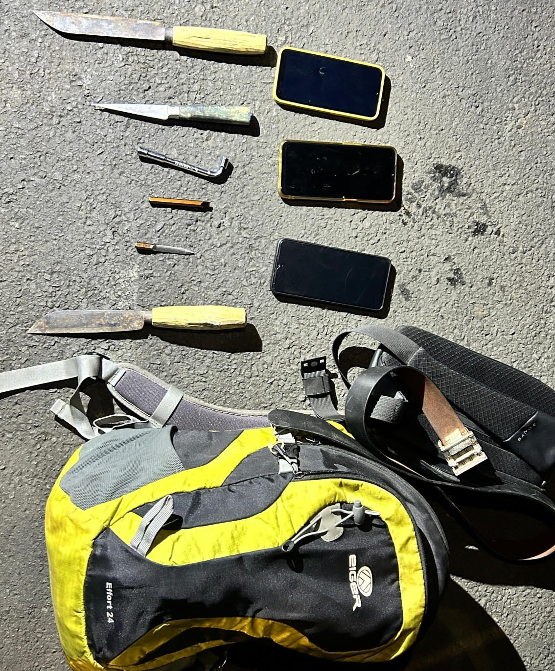 Setelah pengejaran singkat, tim berhasil mengamankan ketiganya. Polisi kemudian menemukan sejumlah barang bukti antara lain: :